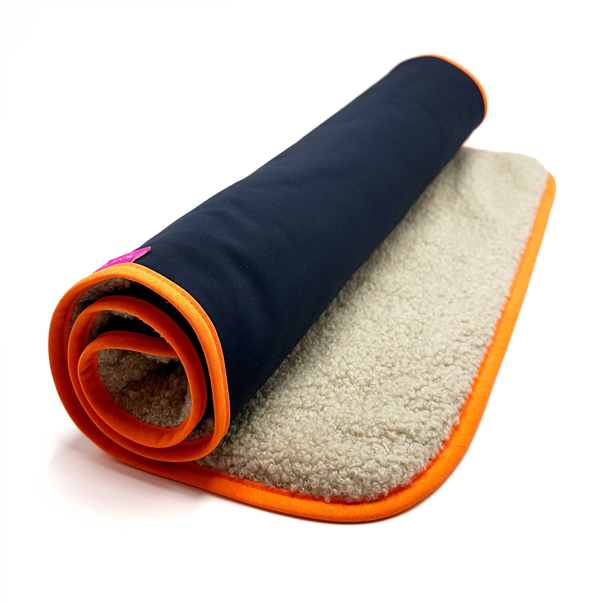 Die MooiZo Dog’n’Roll Hundereisedecke Dunkelblau – Neonorange: